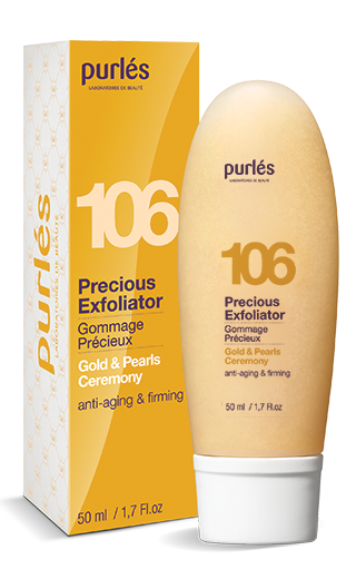 Intensive peeling recommended for mature skin. Enriched with flecks of pearls and corundum (a noble variety of sapphire), gently exfoliates, cleanses and brightens epidermis. Vitamin C and vitamin B fight against free radicals (leading to premature aging of the skin).Thanks to the extracts of champagne and pearls, firms the skin and gives it a silky smooth, revealing fresh, radiant complexion. Skin becomes smooth and exceptionally brightened.