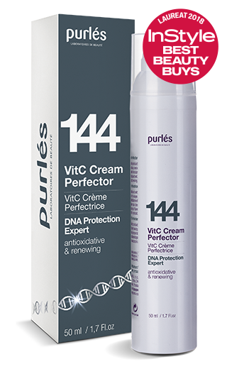 A beautifying cream for all skin types, especially mature skin with uneven tone. Together with the serum, they constitute the ultimate weapon against time and degeneration of the DNA code. 7% Triple VitC System with three active forms of vitamin C (liposomal, stabilized, fresh) reduces the risk of DNA damage and highlights the skin. 3% Antioxidant Complex neutralizes free radicals, stimulates microcirculation and nourishes the skin. Hyaluronic acid provides optimal hydration both in the superficial and deep layers of the skin. Anti-Pollution Active – anti-photoaging ingredient – prevents penetration of pollutants.